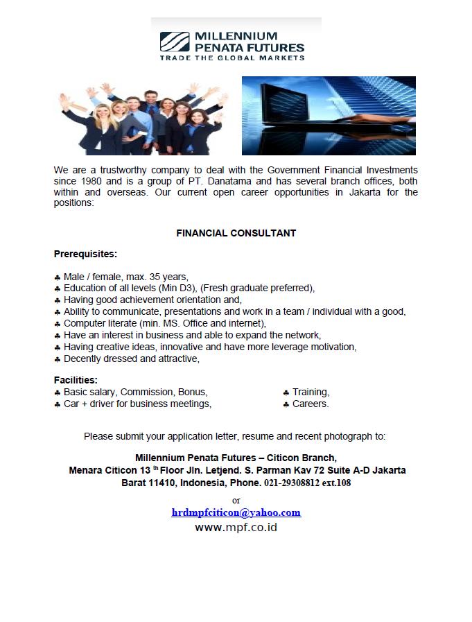 Posting pekerjaan terpopuler 259 financial consultant hari ini di indonesia.